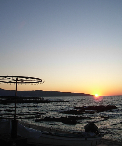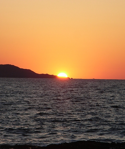 いつもは山に沈む夕日ばかり見ているので、海に沈む夕日は新鮮!