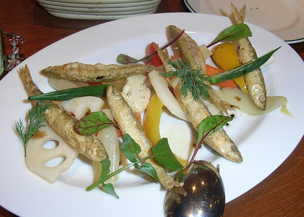 ワカサギのフリットとグレッグ。あげたて熱々のワカサギは美味しかったぁ。