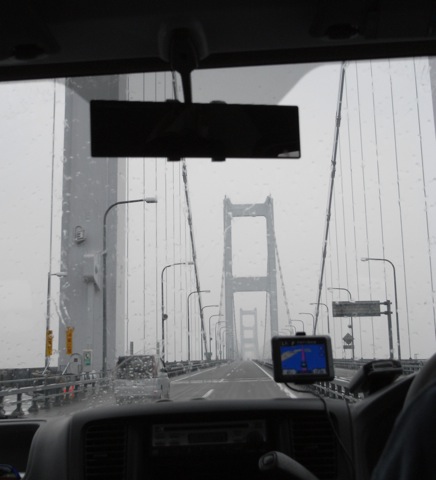 ラーメンを食べた後、雨が降る中、しまなみ海道を通って今治へ。