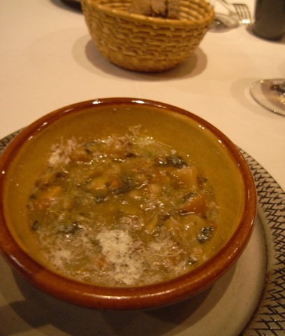 野菜がたくさんの煮込みで、上にパルメザンがたっぷりとかかっています。