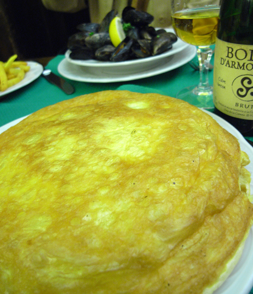 モンサンミッシェル名物ふわふわオムレツとムール貝&フライドポテト、そしてシードル。