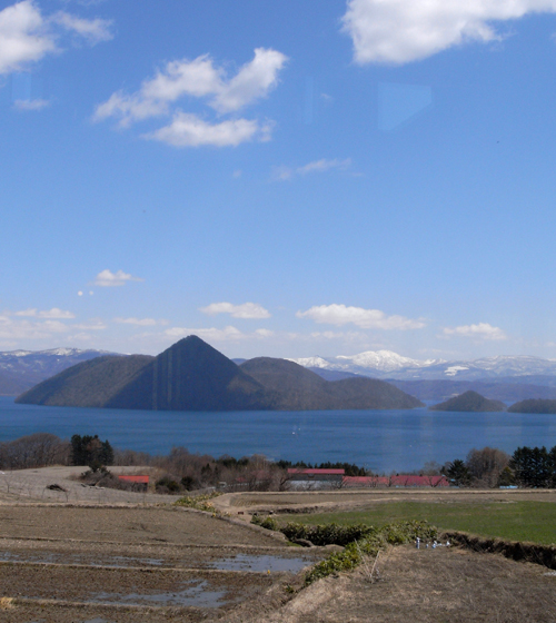 ここのカフェの窓から見る洞爺湖は絶景〜。