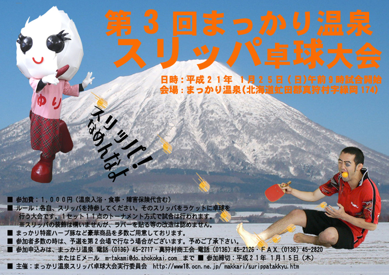 今回は参加人数の制限をしていないので、人数が多い場合は第2会場で予選をする予定です。(決勝トーナメントはもちろん真狩温泉!)