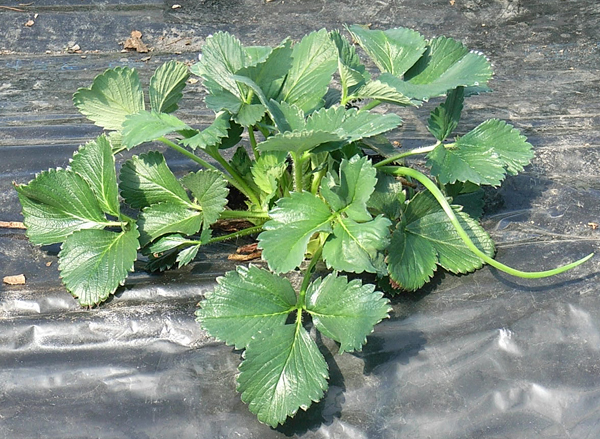 これが私がジャムに使っている『宝交早生』。もう一つ『けんたろう』という種類も植えているのですが、私には葉っぱだけでは違いがあまりわかりませんでした・・・。