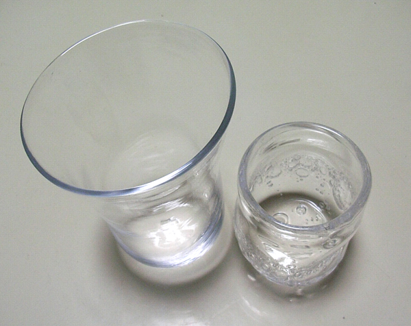 グラスの厚さが半分ぐらいになりました。前回のもぽってりしててかわいいのだけど、泡も入れたい、へこみも付けたい、なんて欲張り過ぎてしまった自分が写ってます。