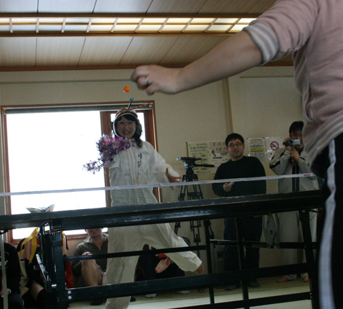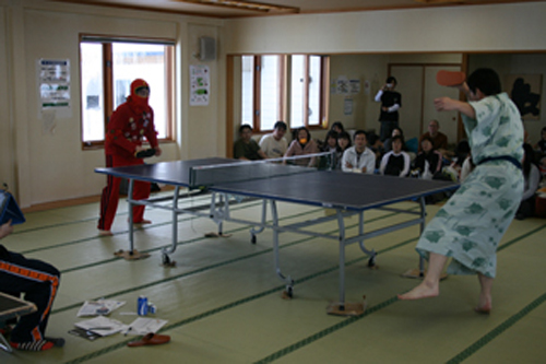真剣に卓球で挑むも良し、コスプレ&スリッパで挑むも良し。