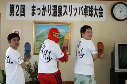 明日のSTVテレビ『どさんこワイド』の4時5分からの特集の最後の方に『真狩温泉スリッパ卓球大会』の練習風景というか、昨年度ベスト8の役場職員Sさんの華麗なスリッパさばきがみられるそうです。