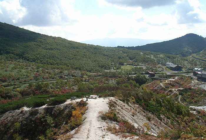 ちょっとわかりにくいですが、ここがイワオヌプリの登り口。記帳所があります。(上から写してま〜す。)右に見えるのが五色温泉。