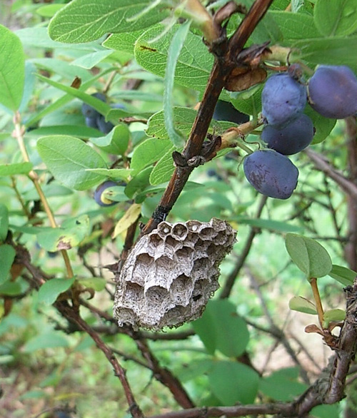 巣のある木は美味しいハスカップがなっていました。蜂も味が分かるのね〜。