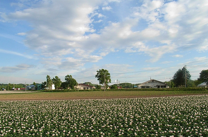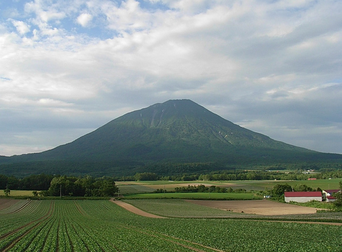 今日の羊蹄山と私の家の前のジャガイモ畑です。