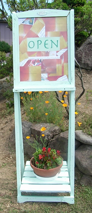 お店?はこんな感じです。 この看板がお出迎えです。(私の手作りですよ)