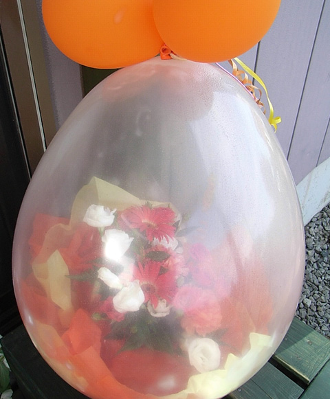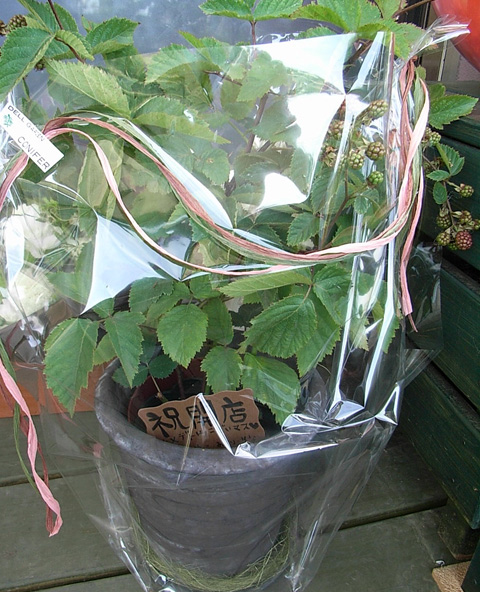 風船に入っているのは『バルーンフラワー』。こちらは東京に戻った子がわざわざ送って来てくれましたよ。中にフラワーアレンジメントが入っています。もう一つはブラックベリーの木。いつの日かこのブラックベリーでジャムを作れたらな、と密かに思っています。
