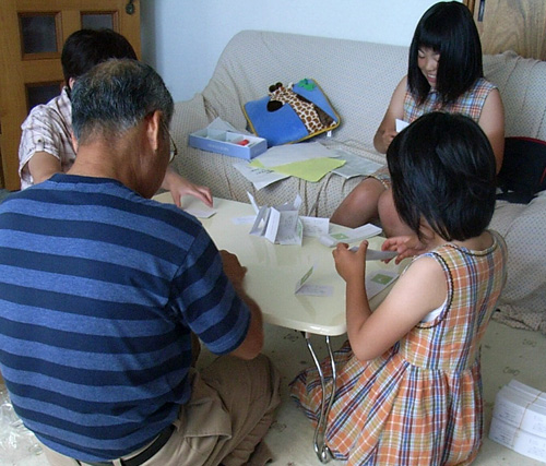 みんなでショップカード折り作業です。