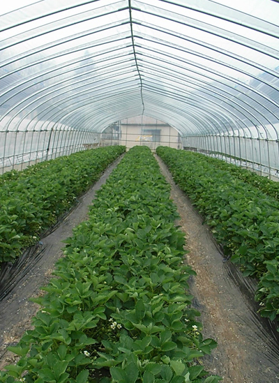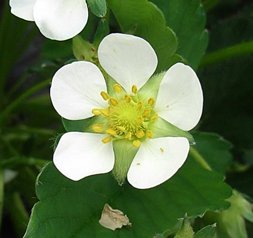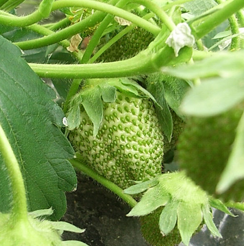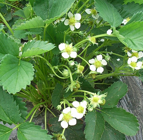 この花は『宝交早生』という品種のものです。品種によって花も違うんですよ〜。