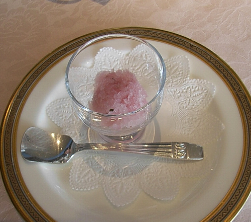 これまた桜のグラニテ。ほんのり塩味でさっぱりとしたお味です。
