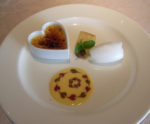 デザートはクレームブリュレとライチのソルベ、そして蘭越産のお米を使ったプティングでした。